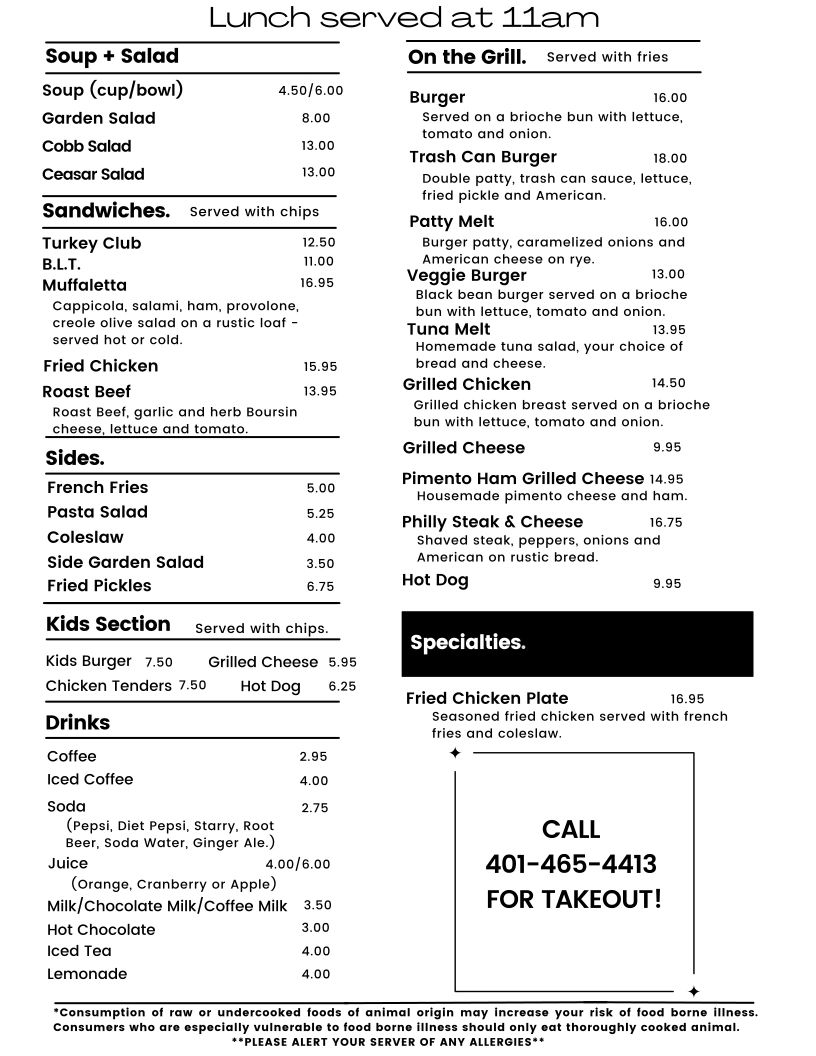 CALL 401-465-4413 FOR DAILY SPECIALS OR TO ORDER TAKE-OUT!